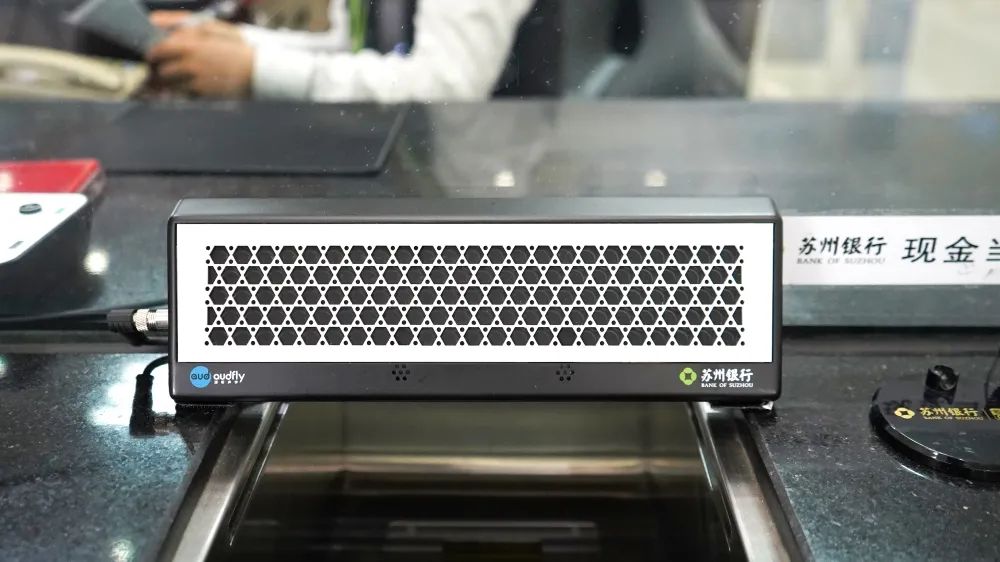 本次清聽(tīng)聲學(xué)攜手蘇州銀行亮相金博會(huì),雙方聯(lián)合展示了智能防干擾柜臺(tái)對(duì)講系統(tǒng),該系統(tǒng)由蘇州銀行和清聽(tīng)聲學(xué)聯(lián)合實(shí)驗(yàn)室合作開(kāi)發(fā),基于清聽(tīng)聲學(xué)核心的定向發(fā)聲技術(shù),借助定向聲控、回聲消除和噪聲動(dòng)態(tài)抑制技術(shù),利用超聲波指向傳播特性及空氣非線性作用,實(shí)現(xiàn)可聽(tīng)聲的指向性傳播效果。
