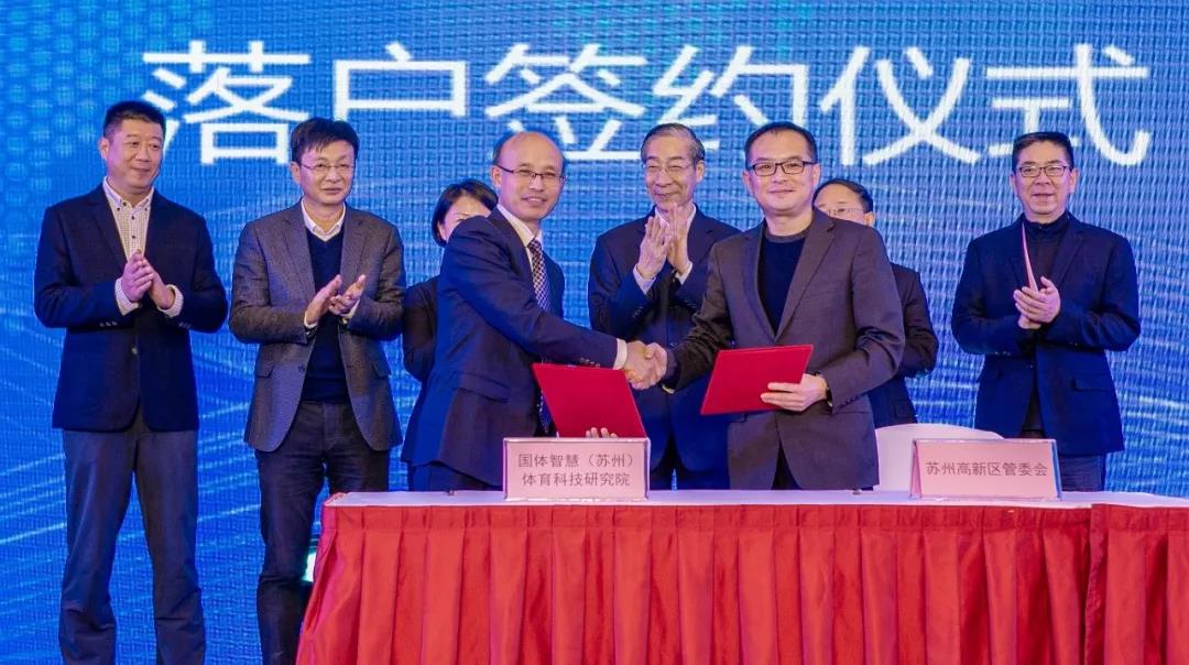 2018年11月22日,國體智慧(蘇州)體育科技研究院成立啟動儀式在江蘇蘇州清山會議中心酒店隆重舉行。中華全國體育總會副主席馮建中、國家體育總局競技體育司司長劉國永、江蘇省體育局副局長劉彤、蘇州市政府副秘書長季晶、江蘇省體育局群眾體育處處長熊偉、蘇州市體育局副局長陶勇杰、國家體育總局體科所智慧體育中心主任李祥臣、蘇州高新區黨工委委員、蘇州科技城黨工委書記陳明等80多位來自海內外的領導、嘉賓共同出席見證了這一激動人心的時刻。
