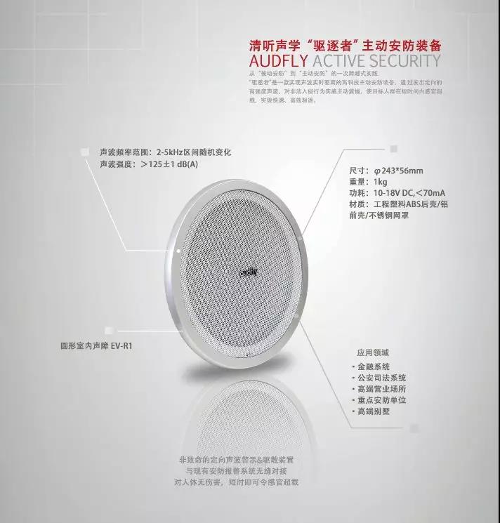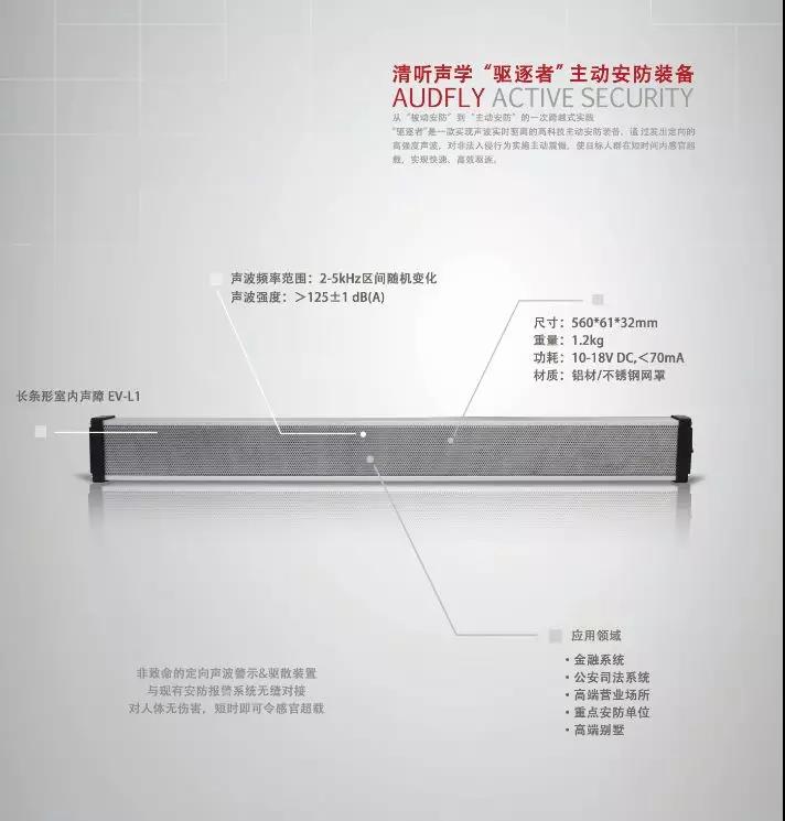 驅逐者主動安防裝置作為科技型聲學創新安防“武器”,堅持“不傷害人體健康”的原則,以高科技手段為銀行安防提供新思路。