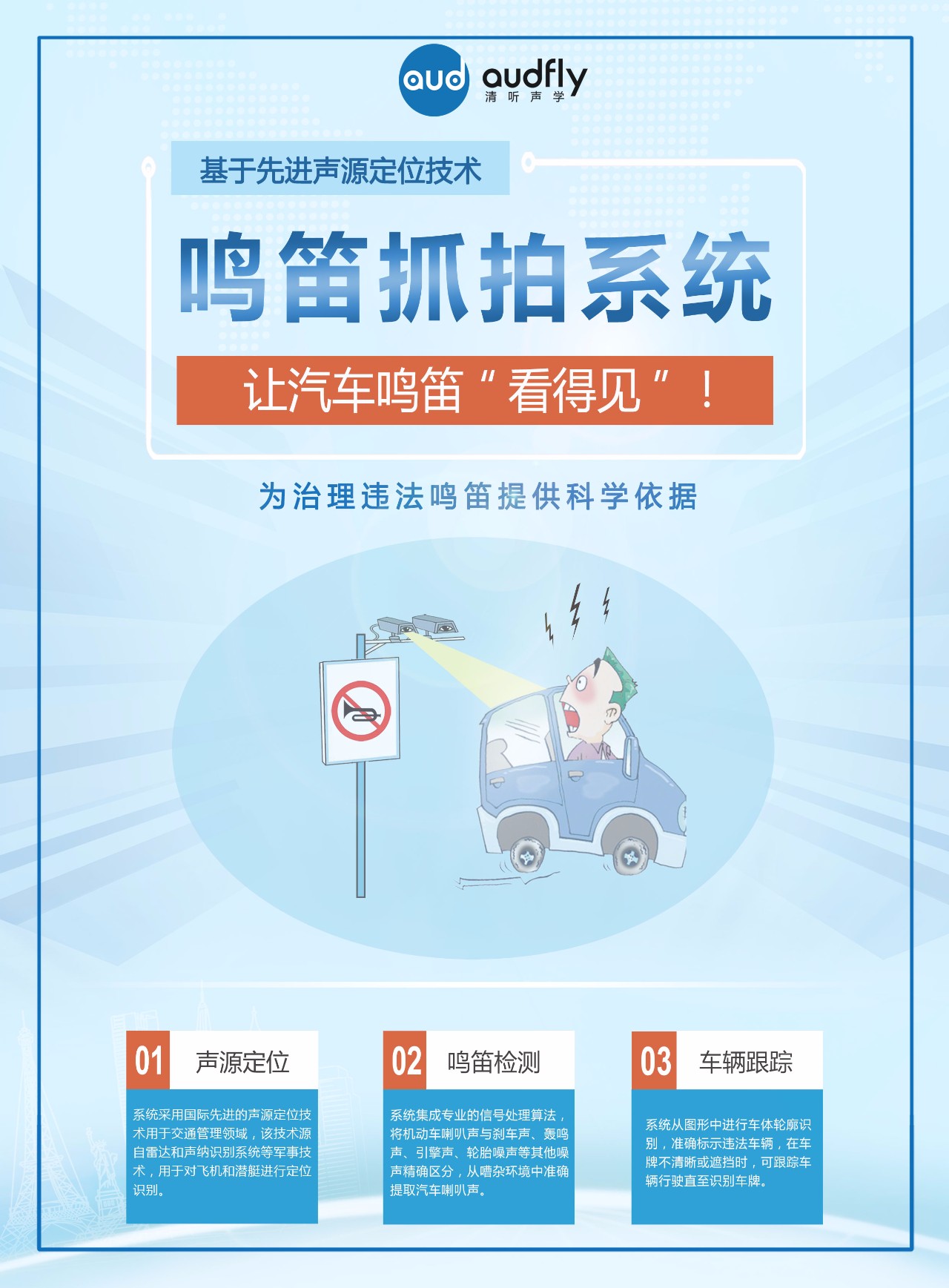 清聽(tīng)聲學(xué)鳴笛抓拍系統(tǒng),基于國(guó)際先進(jìn)的聲源定位技術(shù),自動(dòng)排除剎車、引擎、胎噪、電動(dòng)車?yán)鹊拳h(huán)境干擾,實(shí)時(shí)偵測(cè)車輛鳴笛聲,精準(zhǔn)定位鳴笛車輛,自動(dòng)進(jìn)行車牌識(shí)別、抓拍和車輛跟蹤,實(shí)時(shí)生成圖像、音頻和視頻證據(jù),在線完成證據(jù)的上傳和存儲(chǔ),無(wú)縫接入交警現(xiàn)有的違法監(jiān)測(cè)系統(tǒng),實(shí)時(shí)推到至執(zhí)法人員的手機(jī)等移動(dòng)端設(shè)備,助力交警快速、高效執(zhí)法,給治理違法鳴笛提供權(quán)威科學(xué)的依據(jù)。