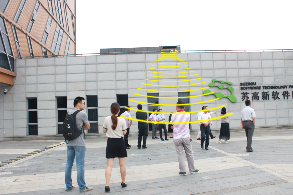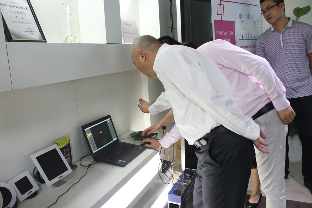 早上10點左右,陳龍副部長一行到達蘇高新軟件園。在工作人員的引導下,現場體驗了清聽聲學全國首創的智慧舞場系統核心部件-聚音寶二代產品,陳龍副部長還特別提議將音響聲音調到最大,工作人員通過調整產品的角度,讓陳龍副部長一行感受到聚音寶獨特的“定向傳音”技術。