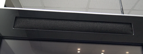可以看出,集成聚音寶之后,廣告機整體外觀并沒有太多改變---在不影響廣告機原本外觀的前提下,創造性的融入定向傳音的功能,本就是此次廣告機集成聚音寶的目的。