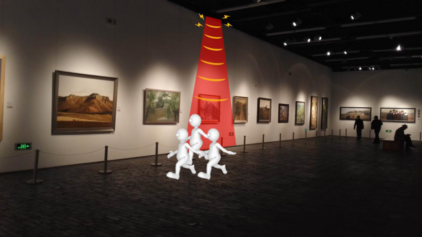 高清監控攝像頭、紅外探測器以及報警系統這些似乎是博物館等展館的安防標配設備,很大程度上這些設備能夠在關鍵時刻發揮作用,及時探測到可疑人員的進出、怪異的行為,實時記錄犯罪證據,并向警方發布報警求助信息。這一連串的反應在安防技術上已經十分成熟,但是缺少了事中階段主動防御的過程,很容易發生還未等到警方到達現場、犯罪嫌疑人已經逃離的情況。在警方調查現場、查看記錄、追蹤追捕的時間里,很有可能造成藝術品被轉賣被破壞,增加展館的損失,也是人類文明的損失。