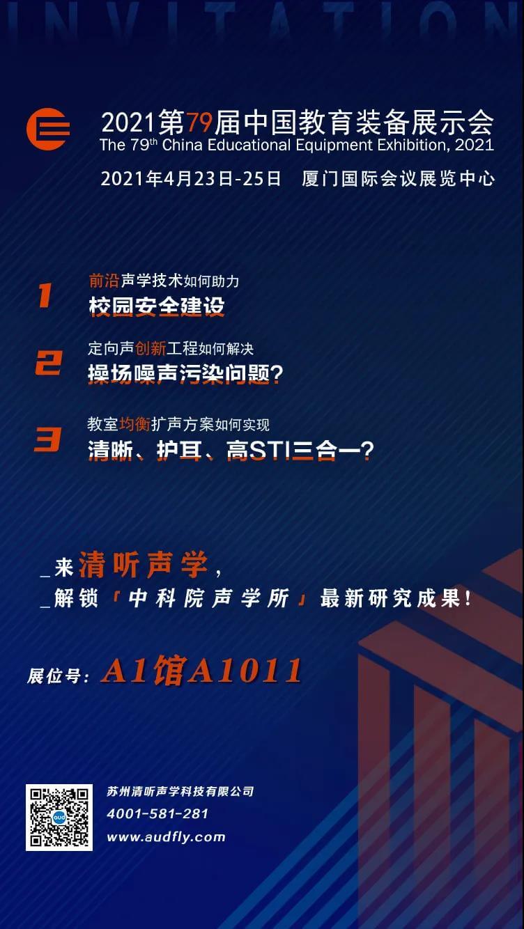 中國教育裝備展示會是我國乃至全球教育裝備行業規模最大、影響最廣、專業性最強的品牌展會,是中國教育裝備行業“風向標”及“晴雨表”。憑借其在展會行業取得的突出業績,連續兩次被商務部評為全國行業品牌展會金手指獎,被列入商務部國家重點引導、支持展會。 清聽聲學:A1館,A1011 ↓ 廈門4/23-25