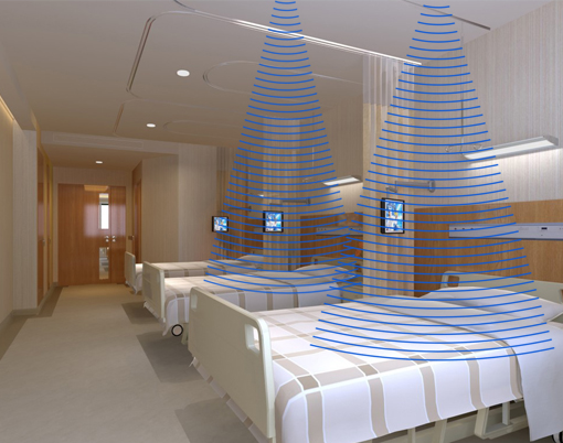指向性揚聲器可以用在醫院運動康復區,如下圖: