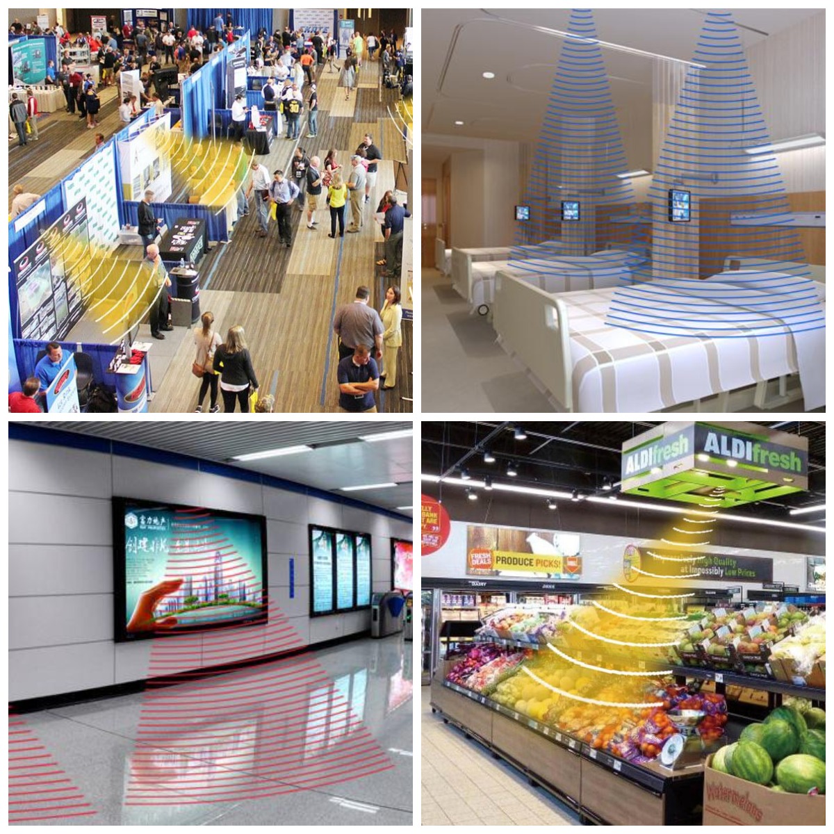 定向揚(yáng)聲設(shè)備在各類場(chǎng)景中廣泛應(yīng)用,如展廳、銀行、學(xué)校、酒店、圖書館、電子顯示屏、家居、商場(chǎng)超市等都可以使用。