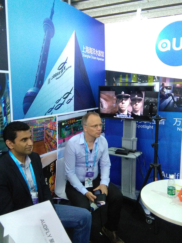參觀者向我們工作人員咨詢有關(guān)聚音寶的各種細節(jié)