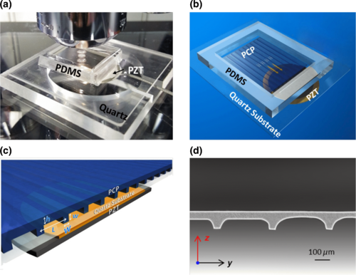 目前,如何用一種簡(jiǎn)單、靈活、低成本、一次性的方法在微小的微通道中實(shí)現(xiàn)動(dòng)態(tài)操縱仍然是一個(gè)挑戰(zhàn)。中國(guó)科學(xué)院深圳高級(jí)技術(shù)研究所(SIAT)的鄭海榮教授領(lǐng)導(dǎo)的一個(gè)研究小組,通過(guò)在微觀尺度上集成聲流體學(xué)、物理學(xué)和聲子晶體的制造,解決了對(duì)微通道中粒子和細(xì)胞的全面、動(dòng)態(tài)操縱的挑戰(zhàn)。在本研究中,位于微通道中的聲子晶片(PCP)由化學(xué)刻蝕而成,產(chǎn)生可調(diào)諧的時(shí)變聲場(chǎng),產(chǎn)生可實(shí)時(shí)調(diào)節(jié)的各向同性可逆聲波輻射力。